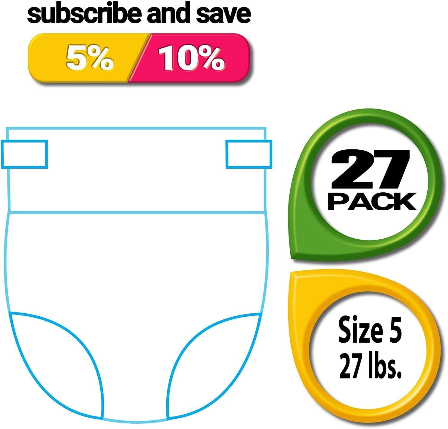 Pack of 27 Disposable Baby Diapers. Unisex Diapers Over 27 lbs Breathable and Lightweight Maximum Absorbency Leak Protective Flexible Waist 16.1 - 23.9" Tab Closure Elastic Gathers
