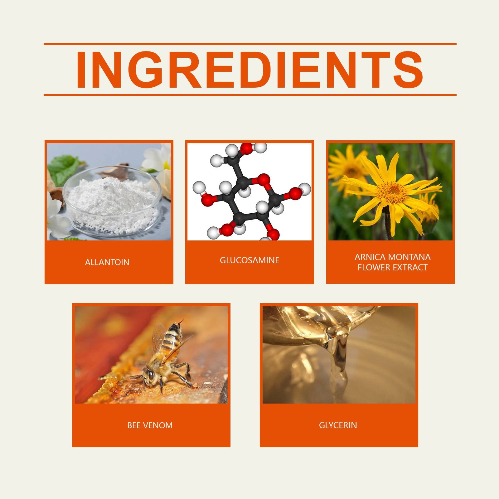 Our joint care cream contains arnica flower extract and glucosamine. It can effectively relieve joint discomfort and provide lasting comfort. The way to use it is simple: clean dry skin. Apply appropriate amount of gel evenly to affected area. Gently massage until absorbed. It can also soothe the skin and promote skin repair.