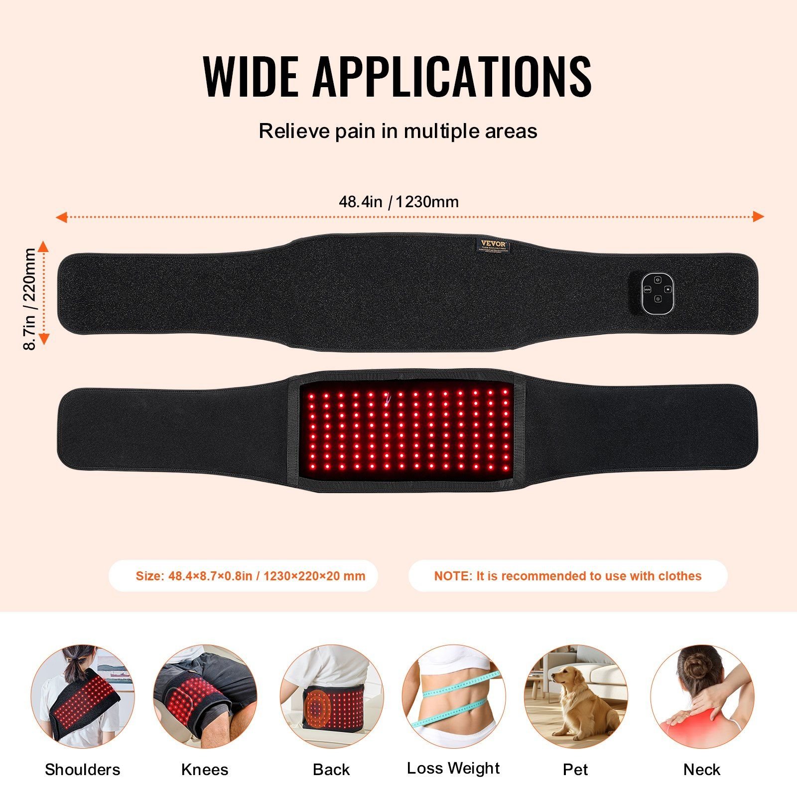 Experience professional-grade therapy that speeds up healing and relieves pain. Featuring 660nm and 850nm wavelengths, 112 LEDs and 336 chips, our red light therapy belt wraps around waist, back, neck, or shoulders, delivering high-intensity light to relax muscles and promote blood circulation.