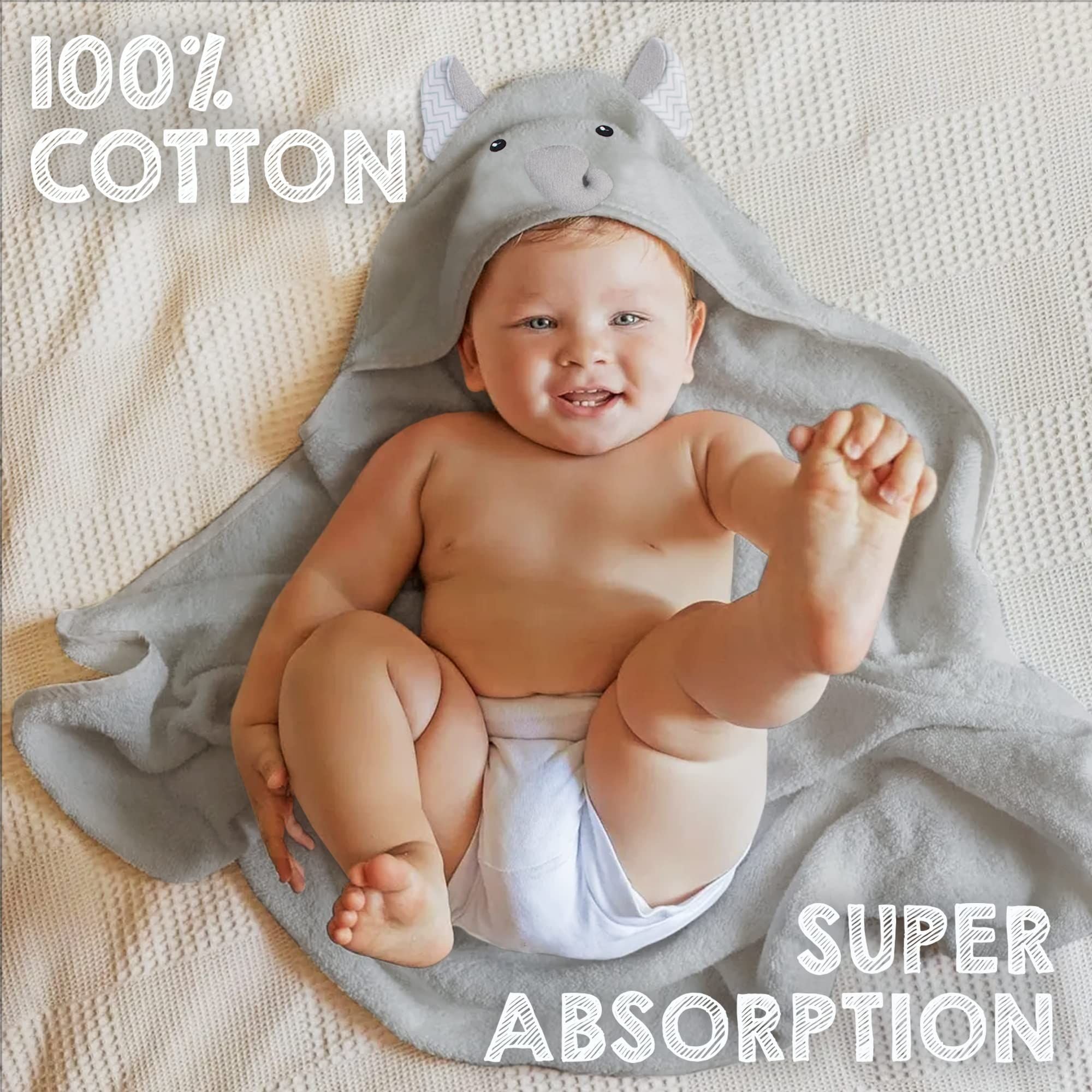 2.Super Soft and Highly Absorbent. Keep precious baby dry and comfortable with ultra-soft baby bath towel. Crafted from premium cotton, baby hooded towel is breathable and super absorbent, making drying off after bath time a breeze.