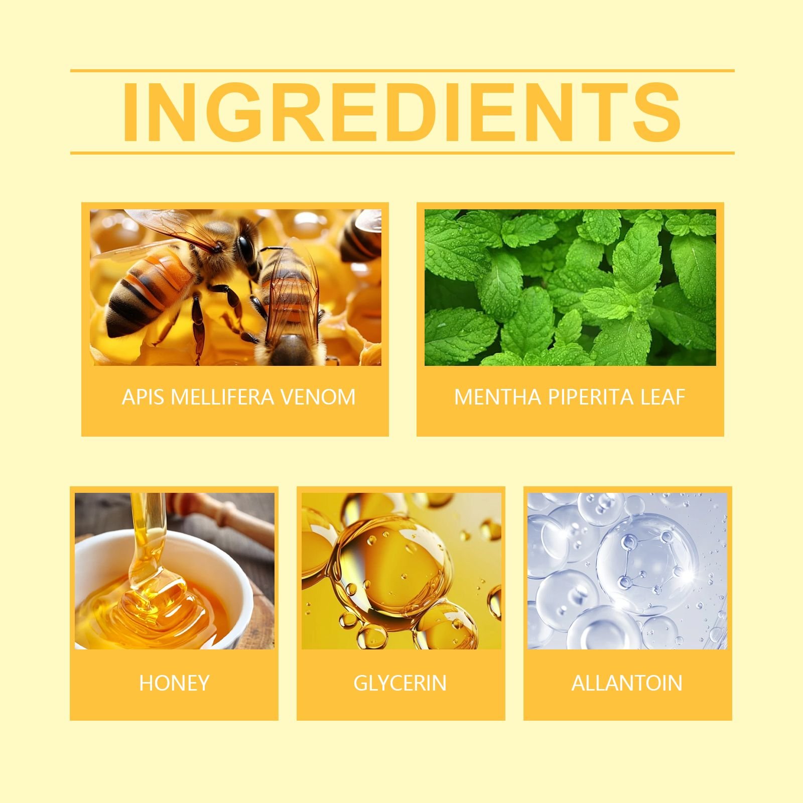 Our bee Venom Joint Care pads contain bee venom, honey, mint leaves. It can be released slowly to gradually knee and soreness. The way to use it is simple: clean the skin and keep it dry. the patch and apply it to the affected area. Wait eight hours, then peel it off. And can maintain a lasting fit, stress, discomfort in daily activities.