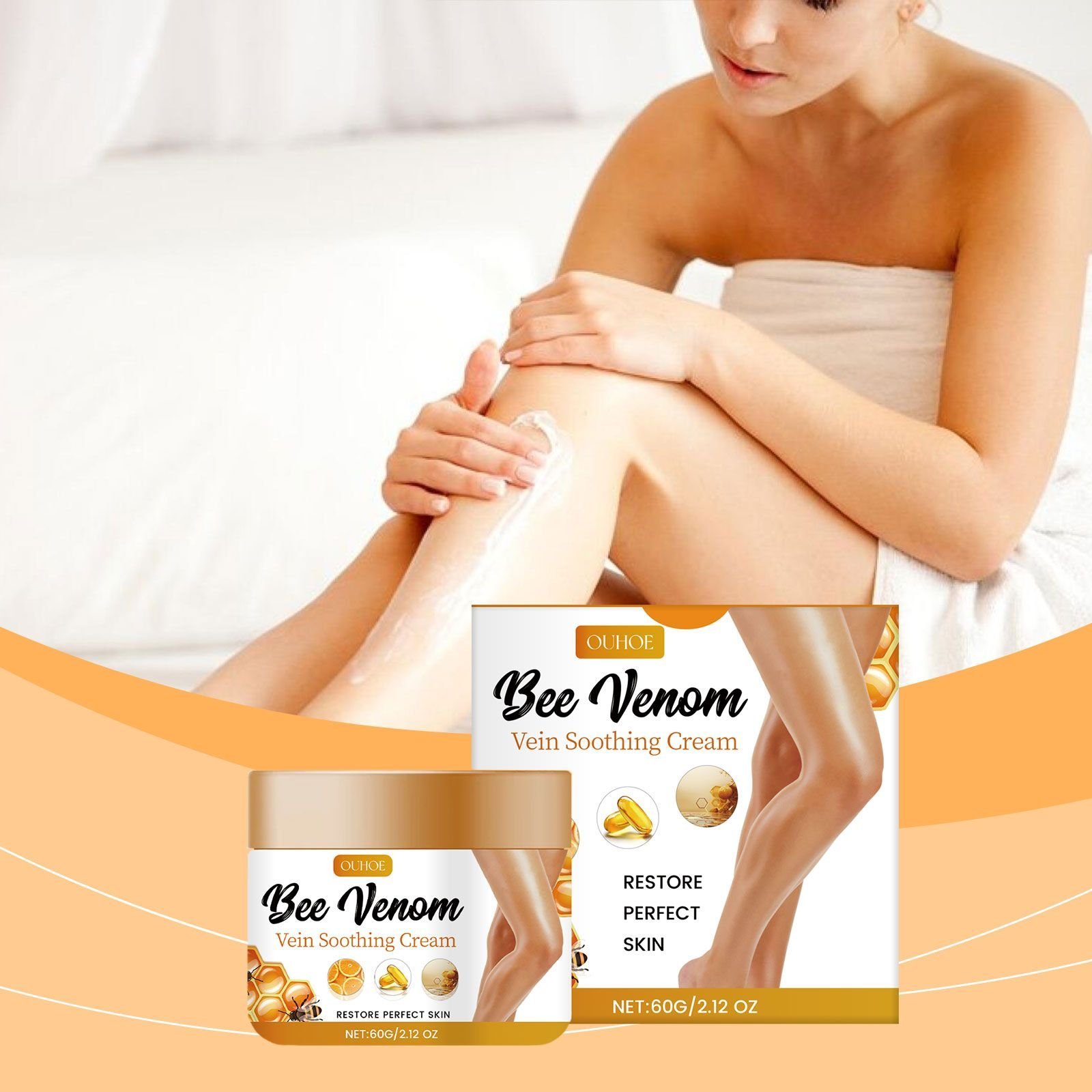 Our body care cream contains bee venom, fish oil, vitamin C. It can improve the appearance of leg veins and beautify the appearance of legs. Moisturize for a long time to help the skin maintain the proper moisture balance. Its use is simple: 1. Clean and dry the skin; 2. Apply appropriate amount of the product evenly to the affected area; 3. Gently massage until absorbed. The formula was developed specifically for sensitive skin to make it safer to use. Long-term use can improve varicose veins.