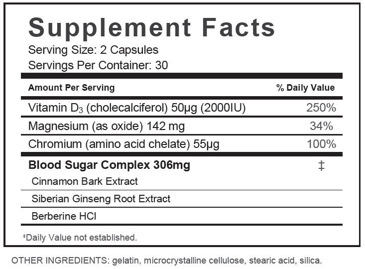 1.Our proprietary blend of Cinnamon, Siberian Ginseng and Berberine combined with Vitamin D3, Magnesium, and Chromium may promote a healthy lifestyle especially when coupled with a balanced diet.